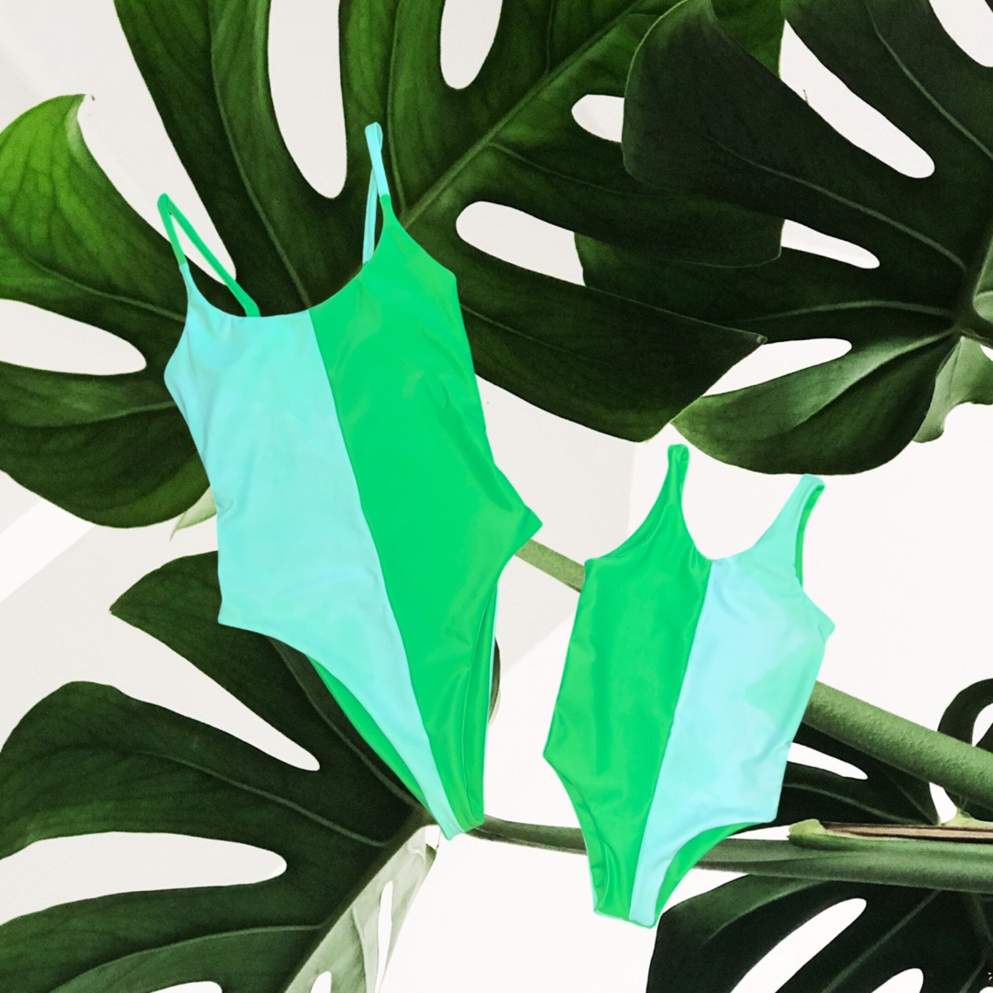 When life gives you limes.. make mommy and mini matching one pieces! You cant help but feel happy in this vibrant green one piece.
